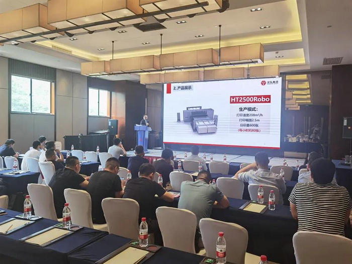 今年春季迪培思,午夜福利免费在线观看数码推出了新一代UV卷板一体打印机HT2500Robo,将工业自动化融入到数字设备和流程中,受到了行业广泛关注。会上,午夜福利免费在线观看数码上海公司总经理乐俊和午夜福利免费在线观看数码销售经理严波共同带来了午夜福利免费在线观看前沿的UV应用及技术分享,并向嘉宾、客户详细阐述了午夜福利免费在线观看新品突破传统UV打印机速度瓶颈的高速喷墨行业解决方案。