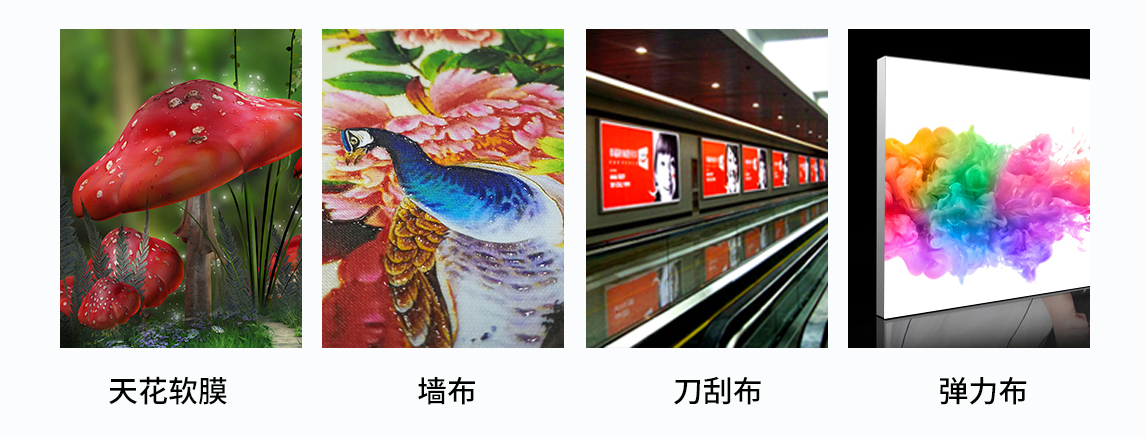 HT5000专为大幅面打印需求而生,实现了5米超大宽幅打印,目前市面上所有的5米材料,如软膜、刀刮布、3P布、墙纸、车贴、喷绘布、网格布、灯片等各种卷材都可以实现完美打印,充分满足当下数字化、定制化、多元化的广告市场打印需求。