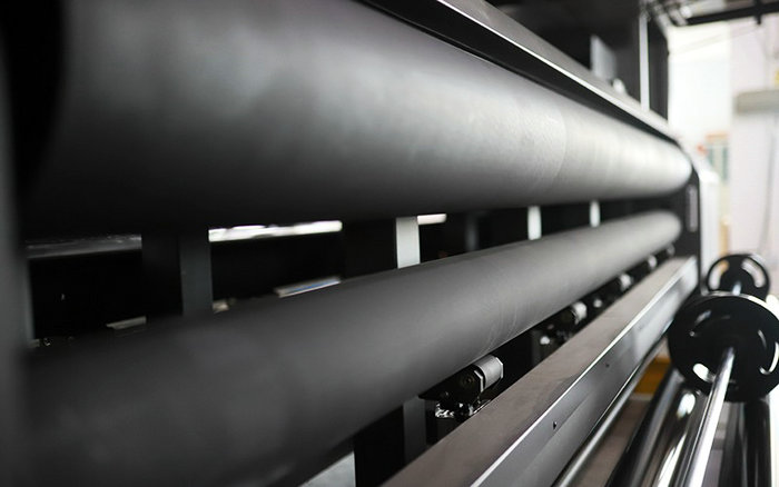Turbo采用午夜福利免费在线观看全系列UV打印机都有配置的京瓷方案,搭载午夜福利免费在线观看第二代京瓷头板生产模式下产能可达到155㎡/h。Turbo的前后双辊托卷经过午夜福利免费在线观看工程师的调试,平行精度可达到0.01mm级别,配合双驱动的稳定送料,用户在打印卷材时只需简单放置即可进行持续印刷。独特的悬空送料设计,进一步提升了设备对材料的兼容性。