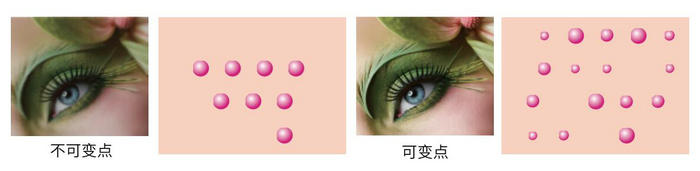 可变点技术按字面理解就是墨滴的大小可变,首先带来的直接效果就是节省UV平板打印机的油墨成本。其次,就是图像的过渡处理了,早期针对图像的过渡很多采用的是用浅色系的油墨打印需要过渡的区域,而有了可变点技术后,用小墨滴打印过渡区域,即使没有浅色油墨,也可以使打印的图像效果更加细腻。