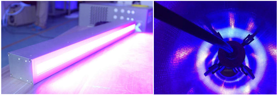 油墨的干燥形式总体上分为物理干燥和化学干燥,UV固化干燥属于物理干燥。UV固化干燥是以可辐射聚合的连结料为基础的,这种干燥方法要求含有完全不同的连结料的特殊油墨和附加的光敏剂。使用UV固化干燥装置,只要有紫外线辐射,墨层就会发生聚合作用并完全干燥。而且聚合作用发生时间很短,基本不到一秒钟,可以做到即喷即取。黑色对UV辐射在墨层中的渗透有阻碍作用,黑墨的固化效应也要比其他彩色或亮光油的固化效应弱,但基本能够满足一般的需求,而对固化效果有较高要求的可以再增加光油工序处理。