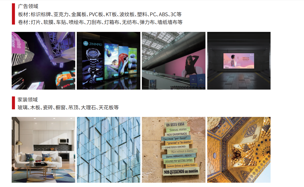 软膜、刀刮布、车贴等常见卷材,PVC、木板等板材